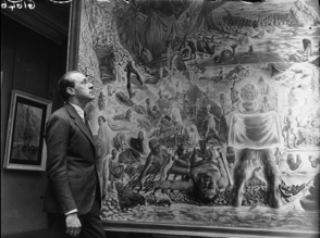 PAVEL TCHELITCHEV AVEC SON TABLEAU “PHENOMENA” A LA TOOTH’S GALLERY, Londres, 1938 - Cliché photographique